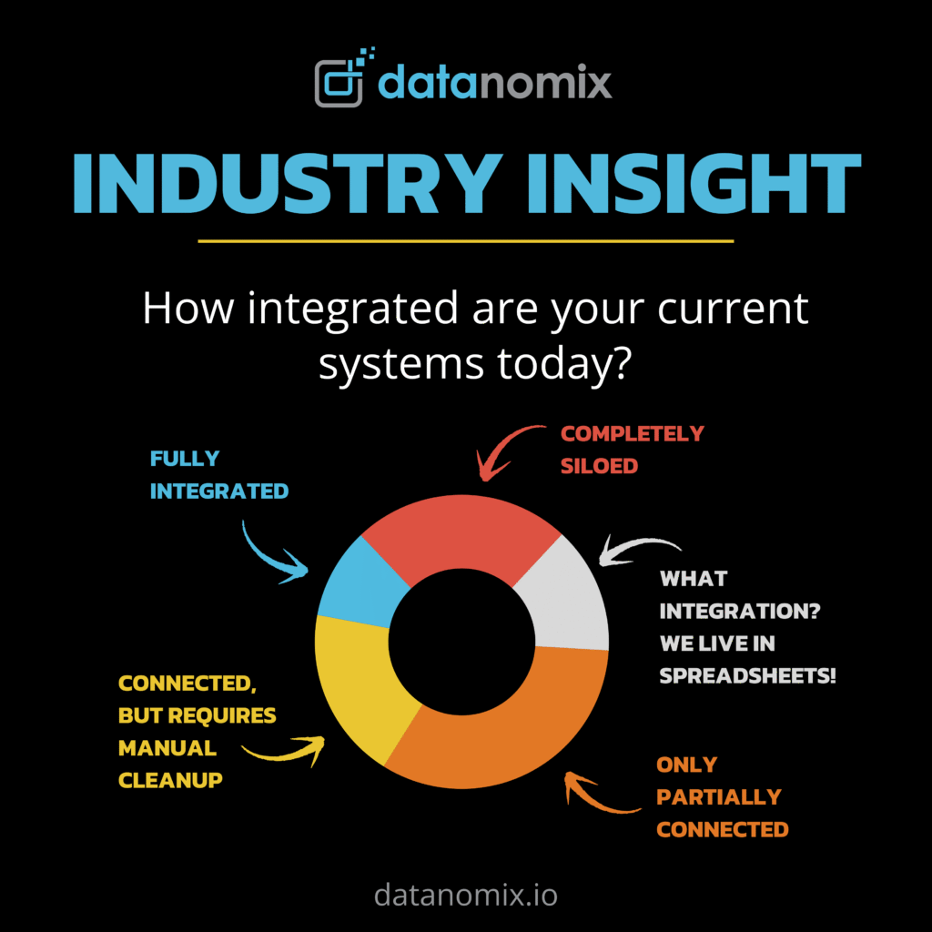 Only 10% of respondents said their systems are fully integrated and working well. More than 90% reported being partially connected, siloed, or still heavily dependent on spreadsheets.