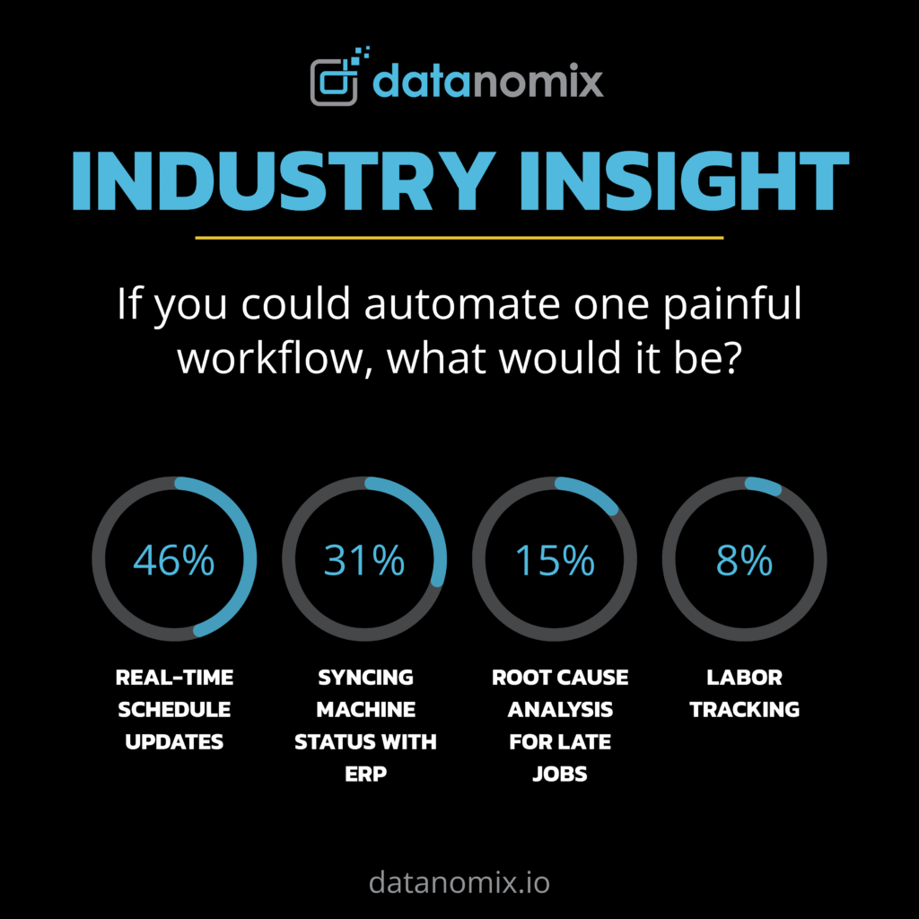 The top response by far was real-time schedule updates (46%). Next was syncing machine status with ERP (31%).